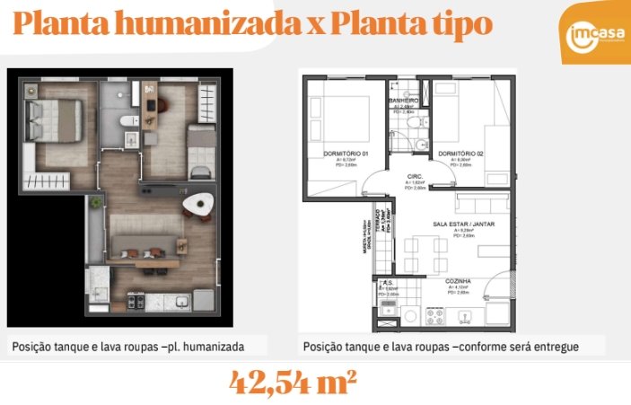 - Área Privativa: 42,54 m²