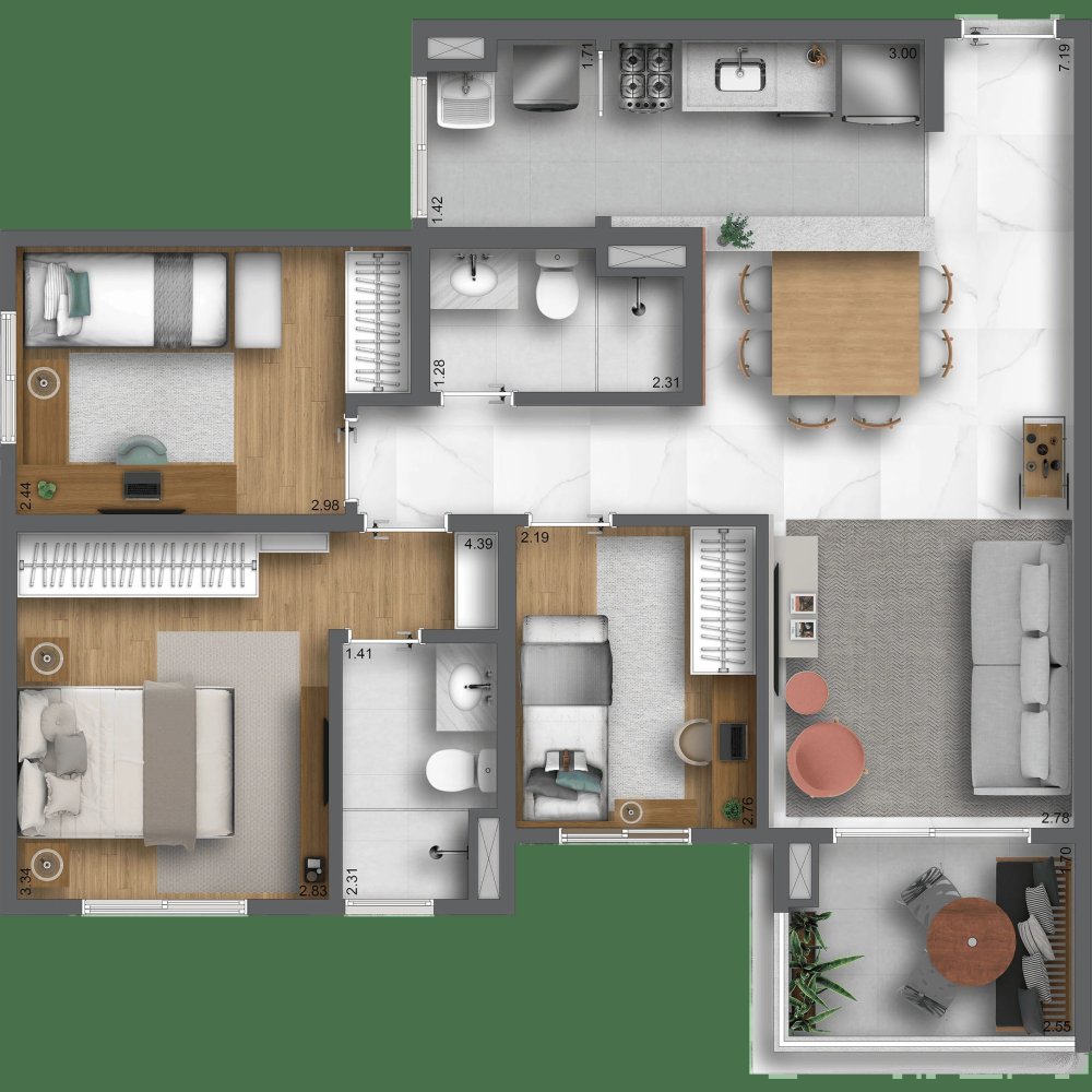 - Área Privativa: 57 m²