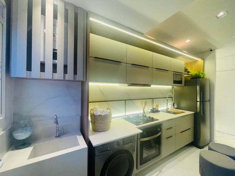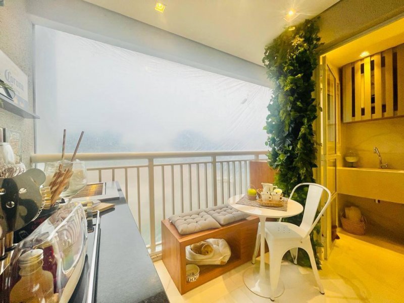 A varanda se tornou um ambiente de descompressão em um apartamento, onde é possível apreciar a paisagem e relaxar. A integração com a cozinha traz maior praticidade para receber os amigos em um delicioso encontro gastronômico. O espaço conta com ponto elétrico para instalação de churrasqueira, adega ou cervejeira.
