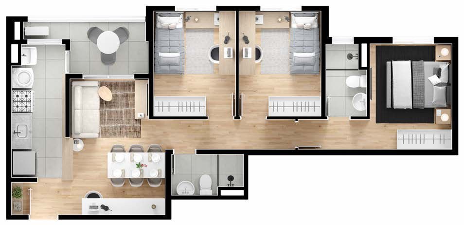 PREVISÃO PARA AR CONDICIONADO NA SALA E DORMITÓRIOS COM SACADA TÉCNICA